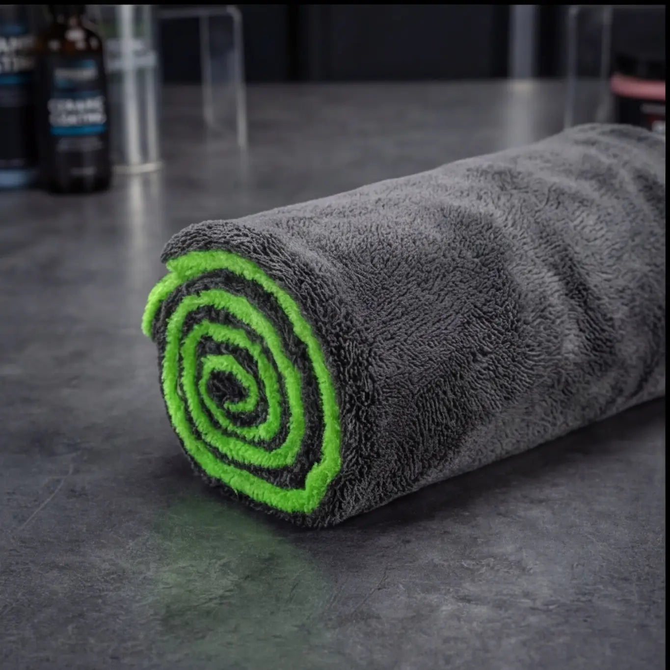 DryoTowel™ 1400gsm to ultra-miękka struktura "Twisted Loop", która bezpiecznie "połyka" wodę i brud, chroniąc blask lakieru na lata.